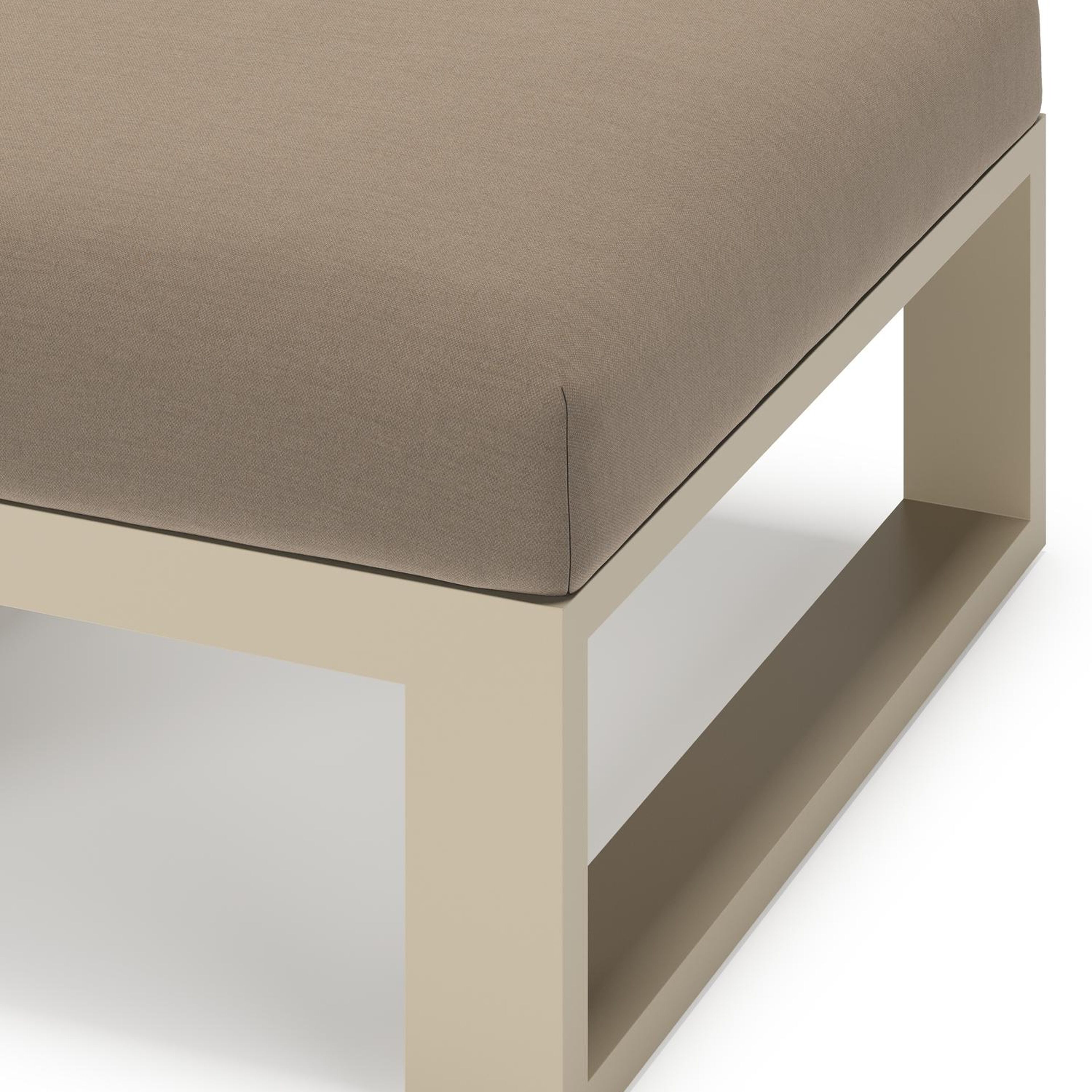 Verato poef in beige aluminium met natte heather grey all weather sunbrella® luxe kussen | Exterioo tuinmeubelen