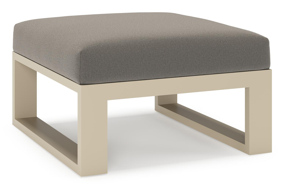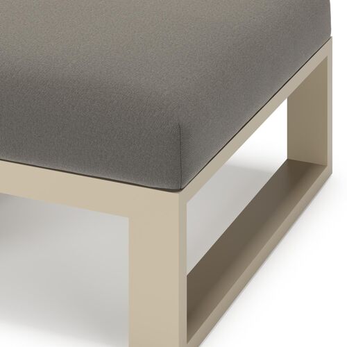 Verato poef in beige aluminium met natte dark taupe all weather sunbrella® luxe kussen | Exterioo