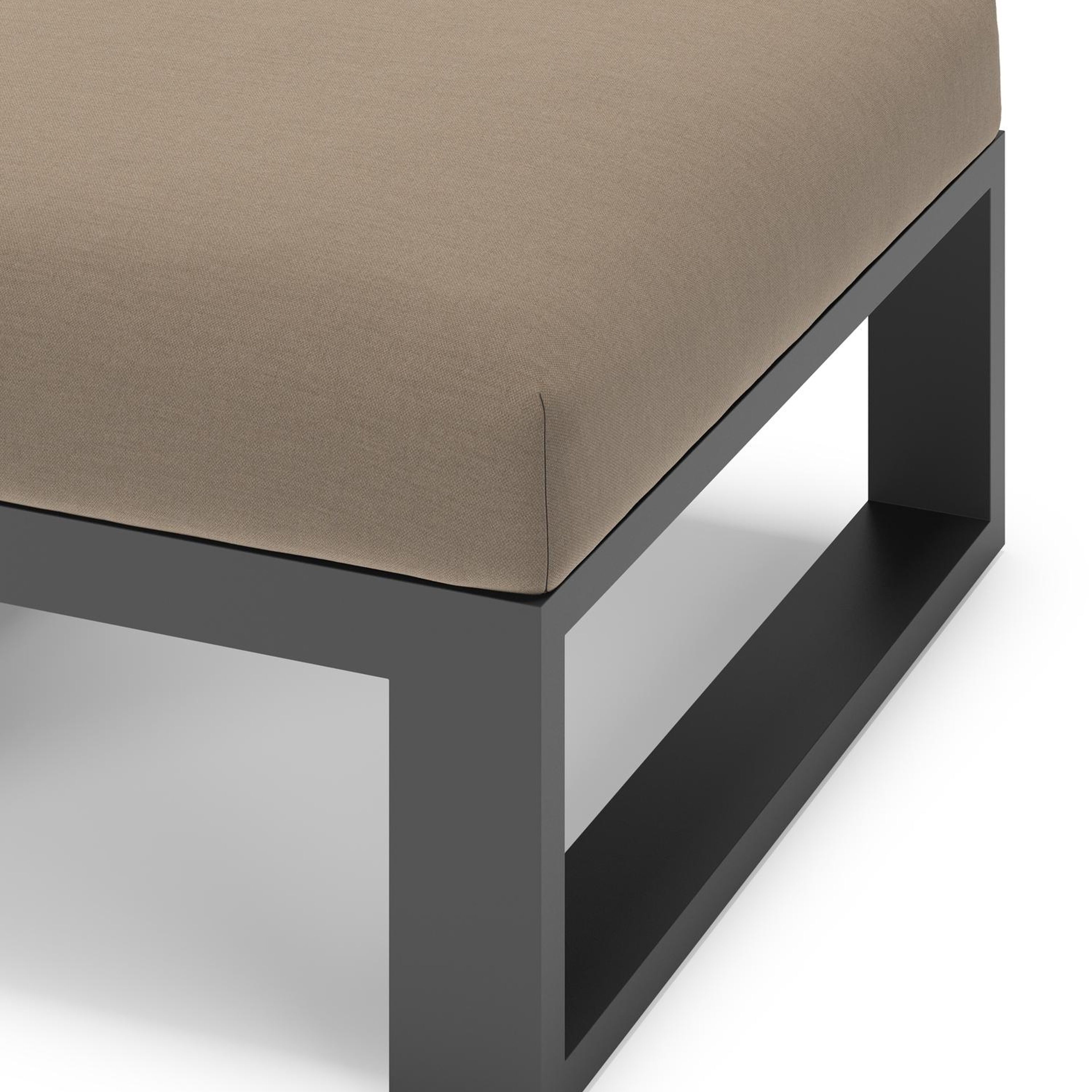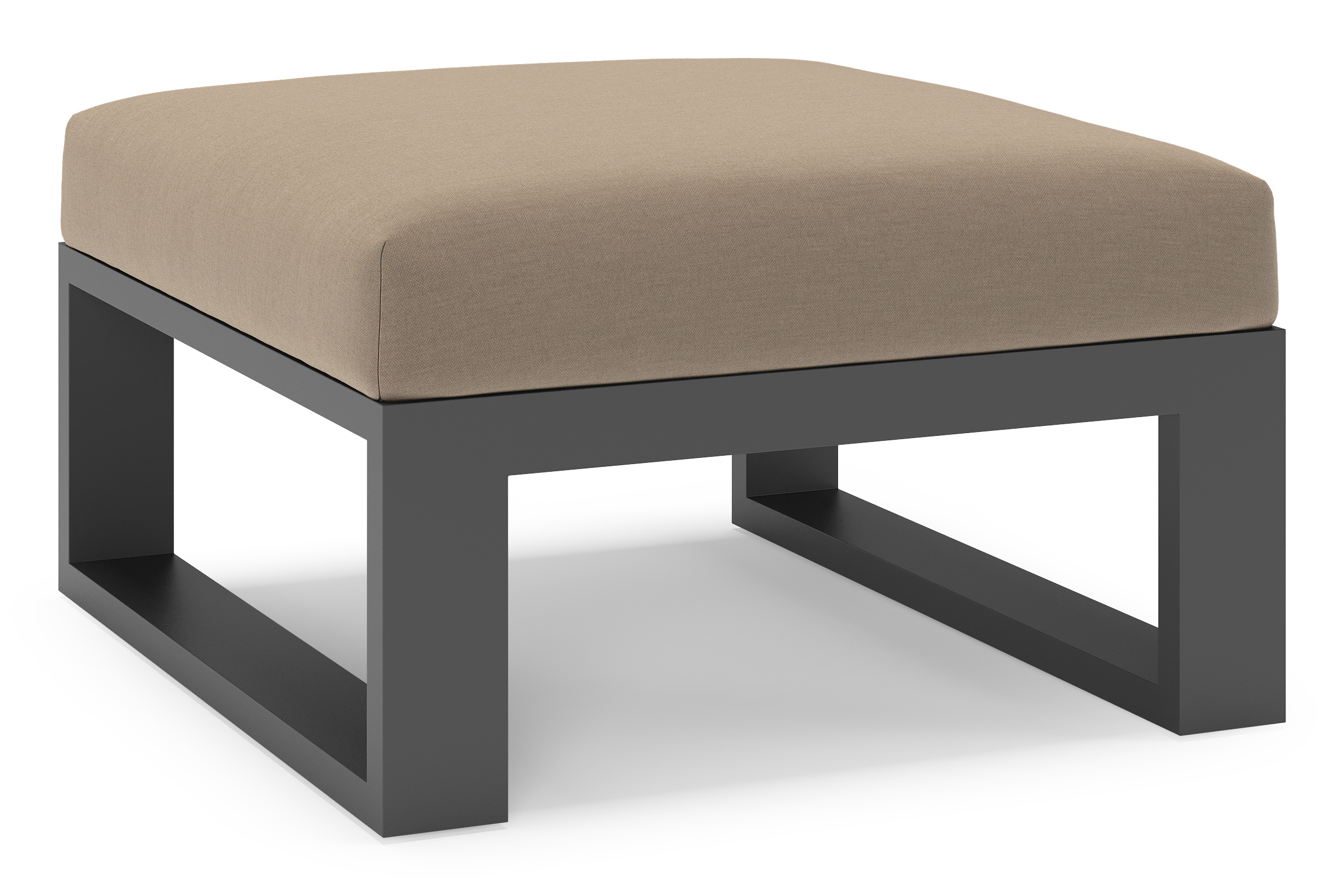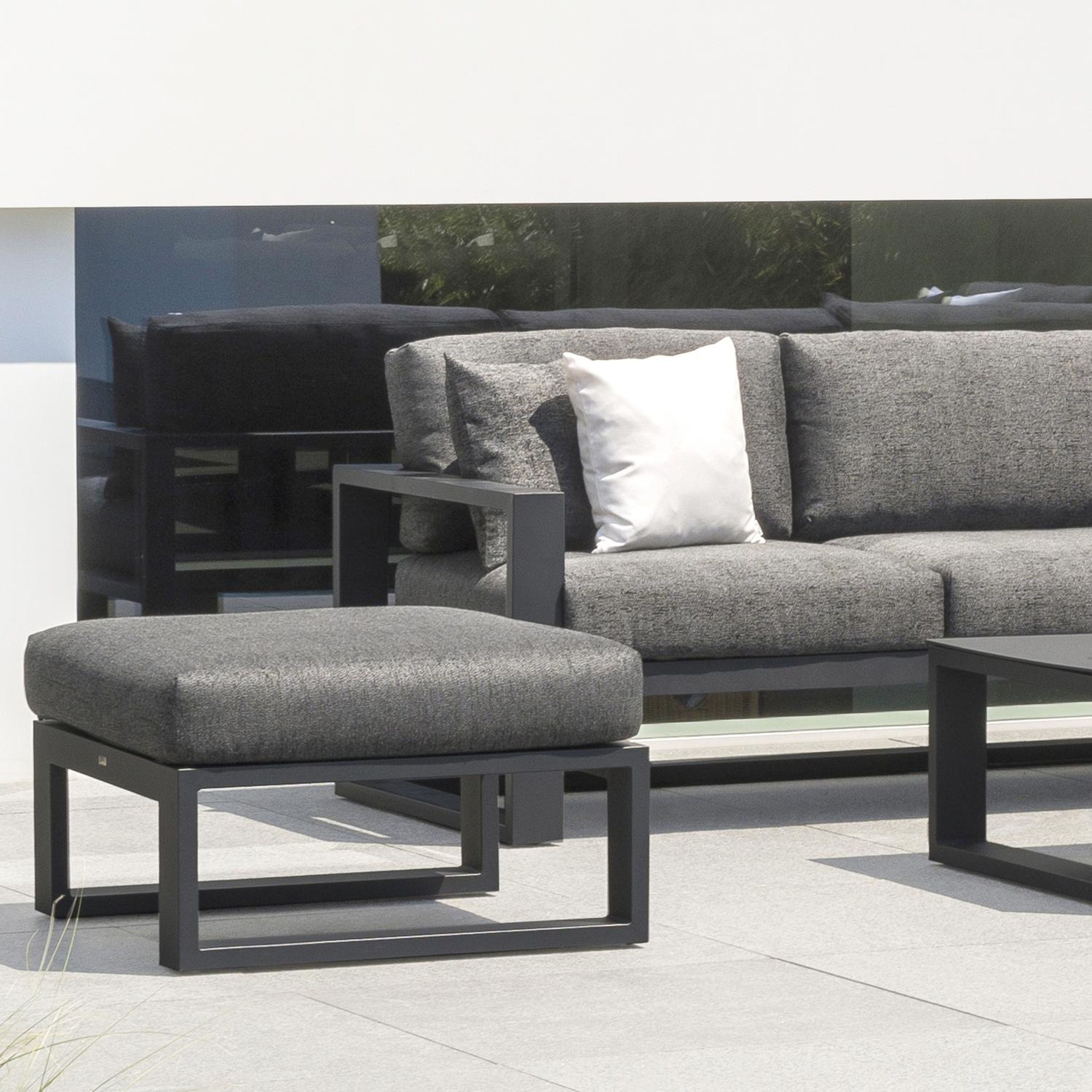 Verato poef in zwart aluminium met natte heather grey all weather sunbrella® luxe kussen | Exterioo tuinmeubelen