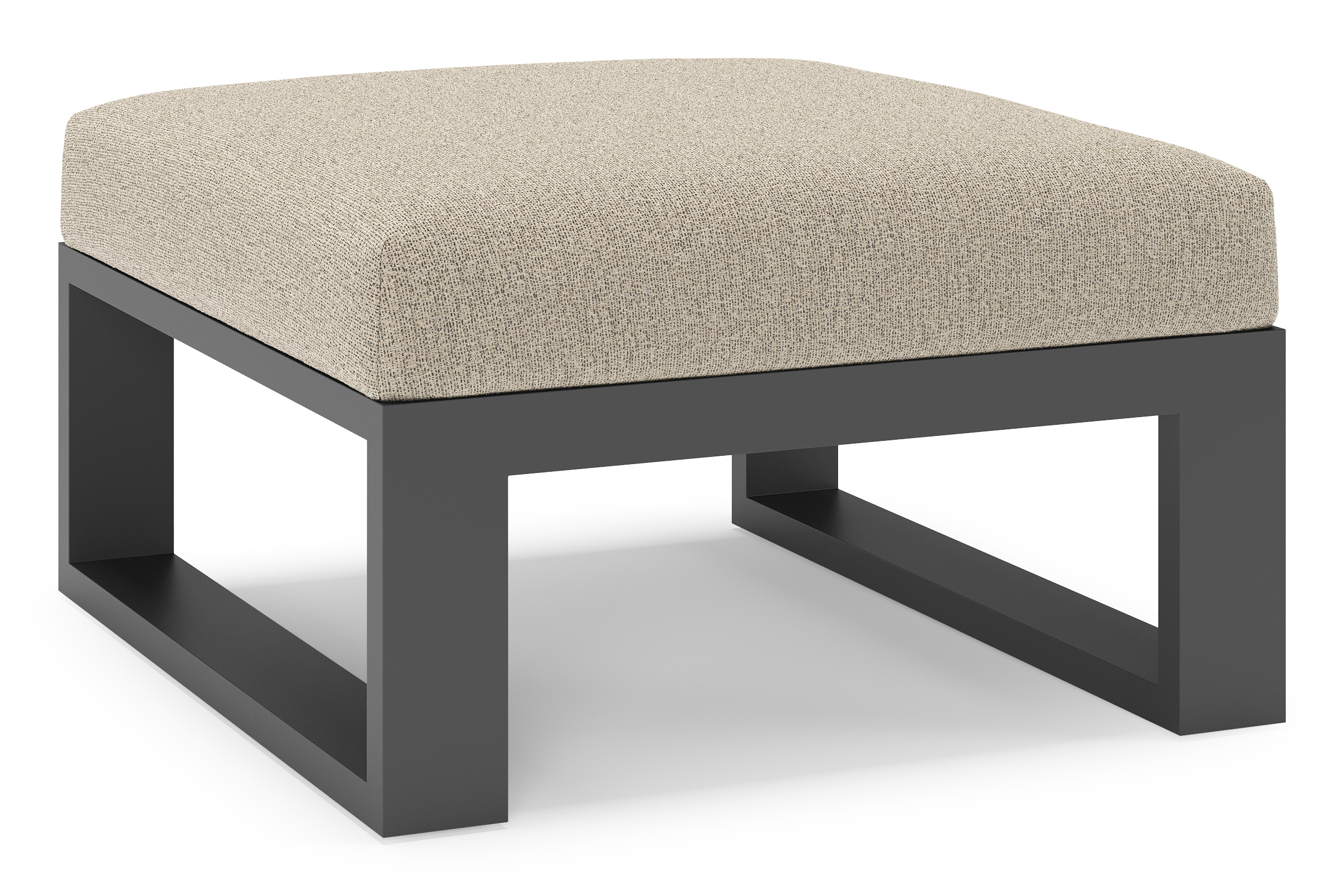 Verato poef in zwart aluminium met catania beige all weather cosytica kussen | Exterioo tuinmeubelen