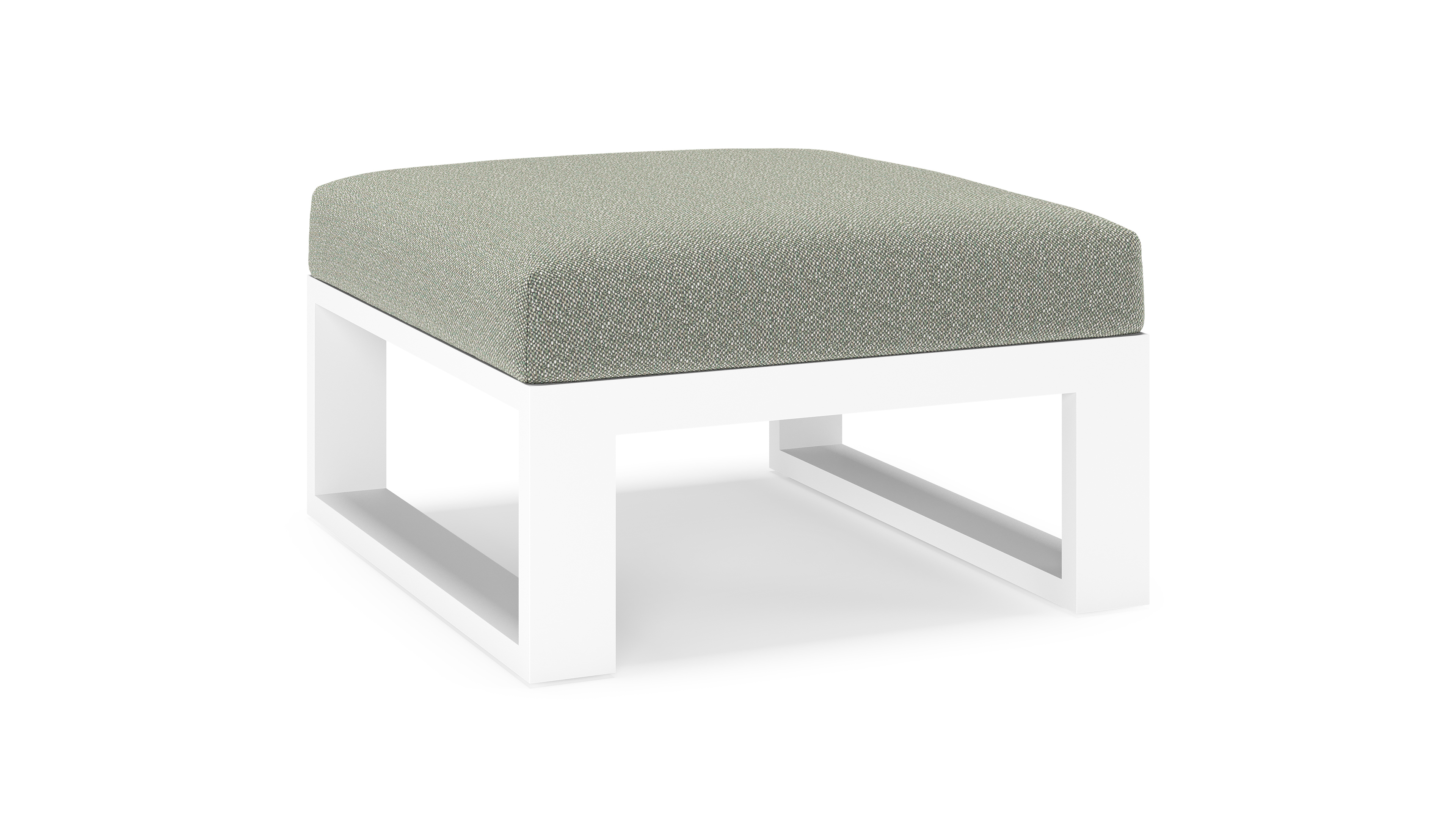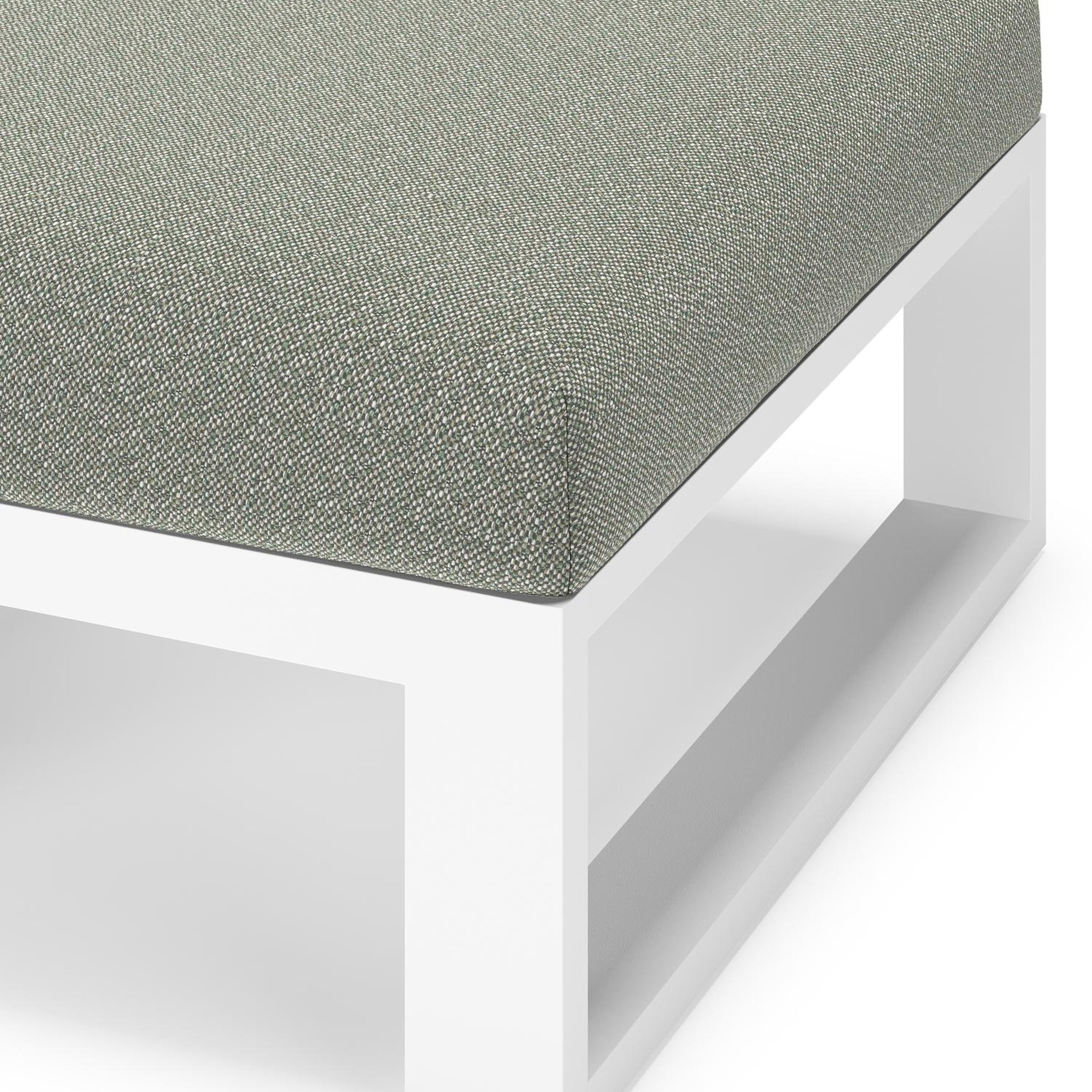 Verato poef in wit aluminium met savane leaf all weather sunbrella® luxe kussen | Exterioo tuinmeubelen