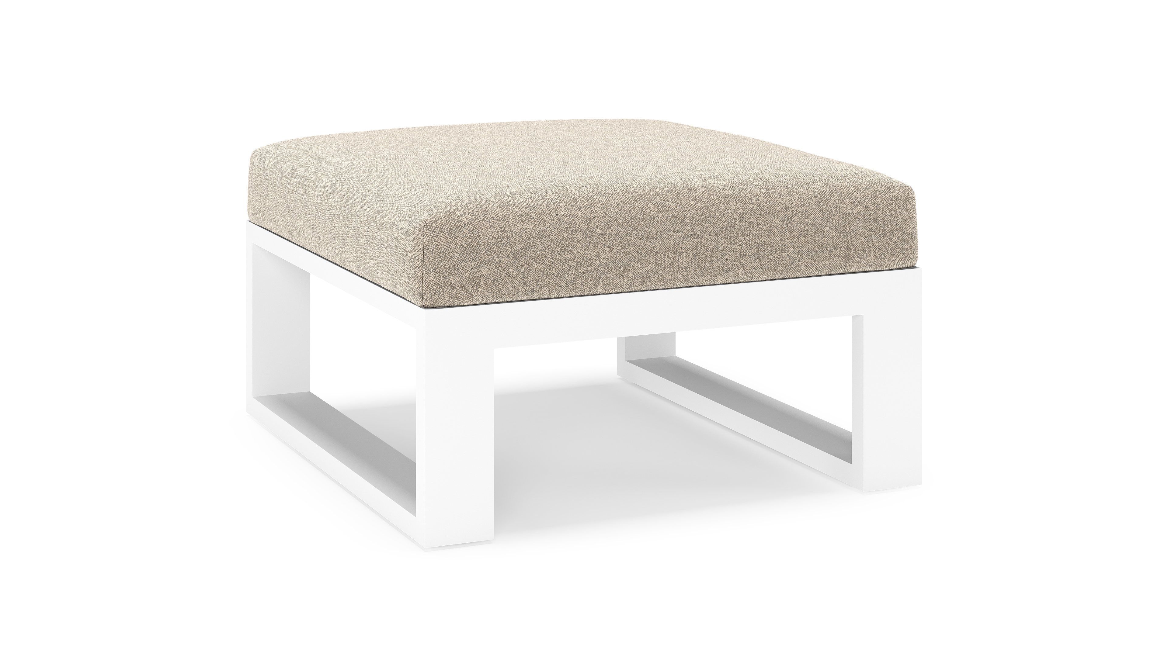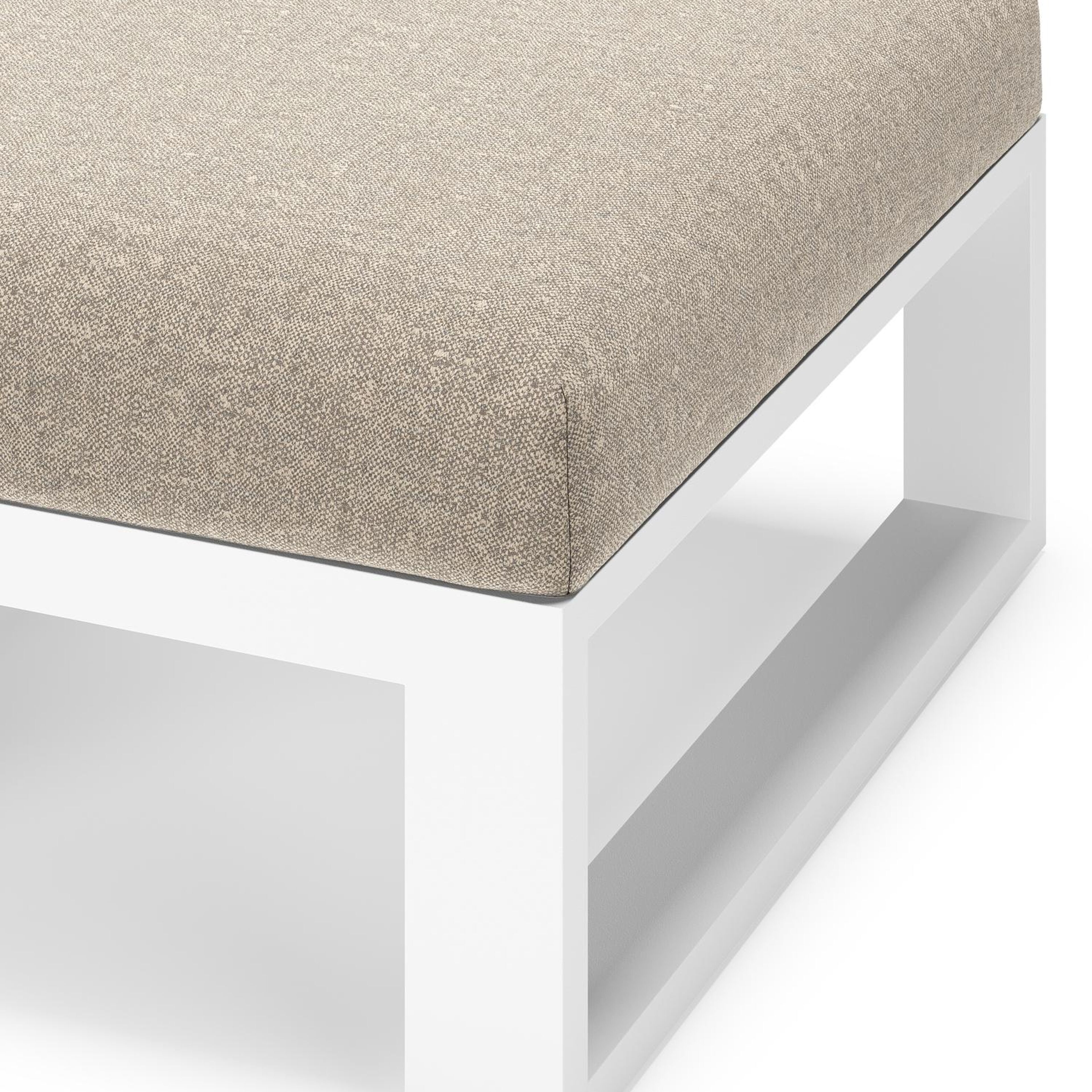 Verato poef in wit aluminium met chartres pewter all weather sunbrella® luxe kussen | Exterioo tuinmeubelen