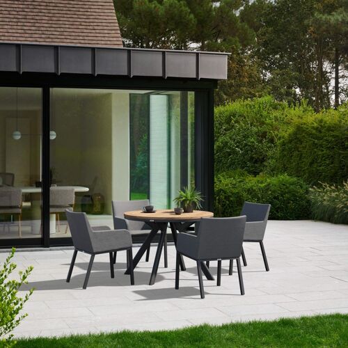 Viaro tuinset in zwart aluminium en colour finish teak tafelblad met 4 Rivo tuinstoelen | Exterioo