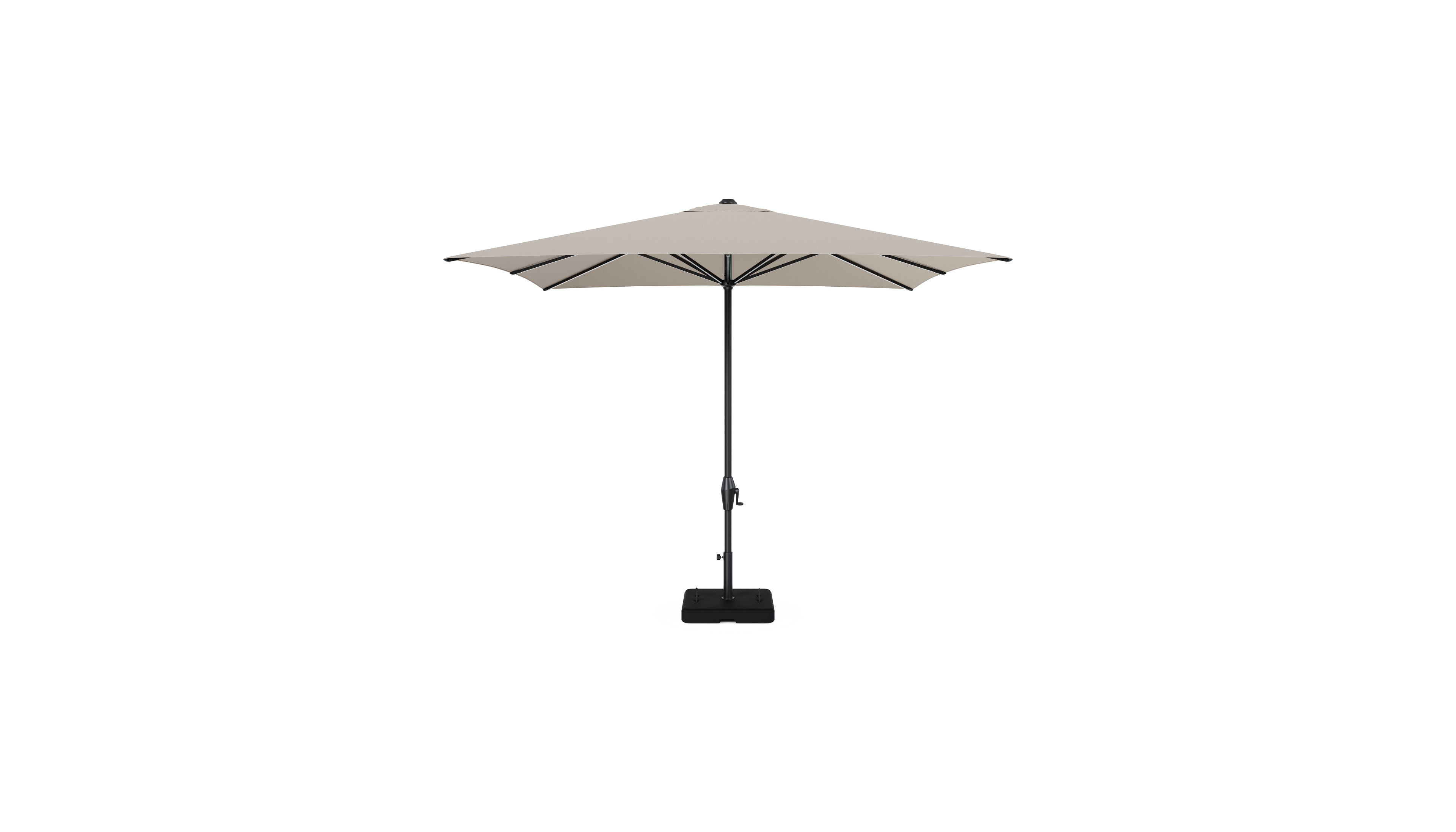 Viola staanparasol in zwart aluminium en beige Weather+ Softtouch parasoldoek - L1 300 x L2 300 cm met parasolvoet Intenso 60 kg | Exterioo tuinmeubelen