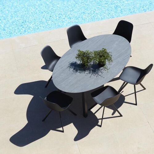 De Virano tuinstoel is een moderne stoel in ons Bristol A là Carte gamma. Hij is gemaakt van aluminium en is hierdoor roestvrij. De zitting en rugleuning zijn gemaakt van kunststof. De Virano stoel zit heel comfortabel dankzij zijn hoge rugleuning. Hij past mooi samen met tafel met een zwart frame.