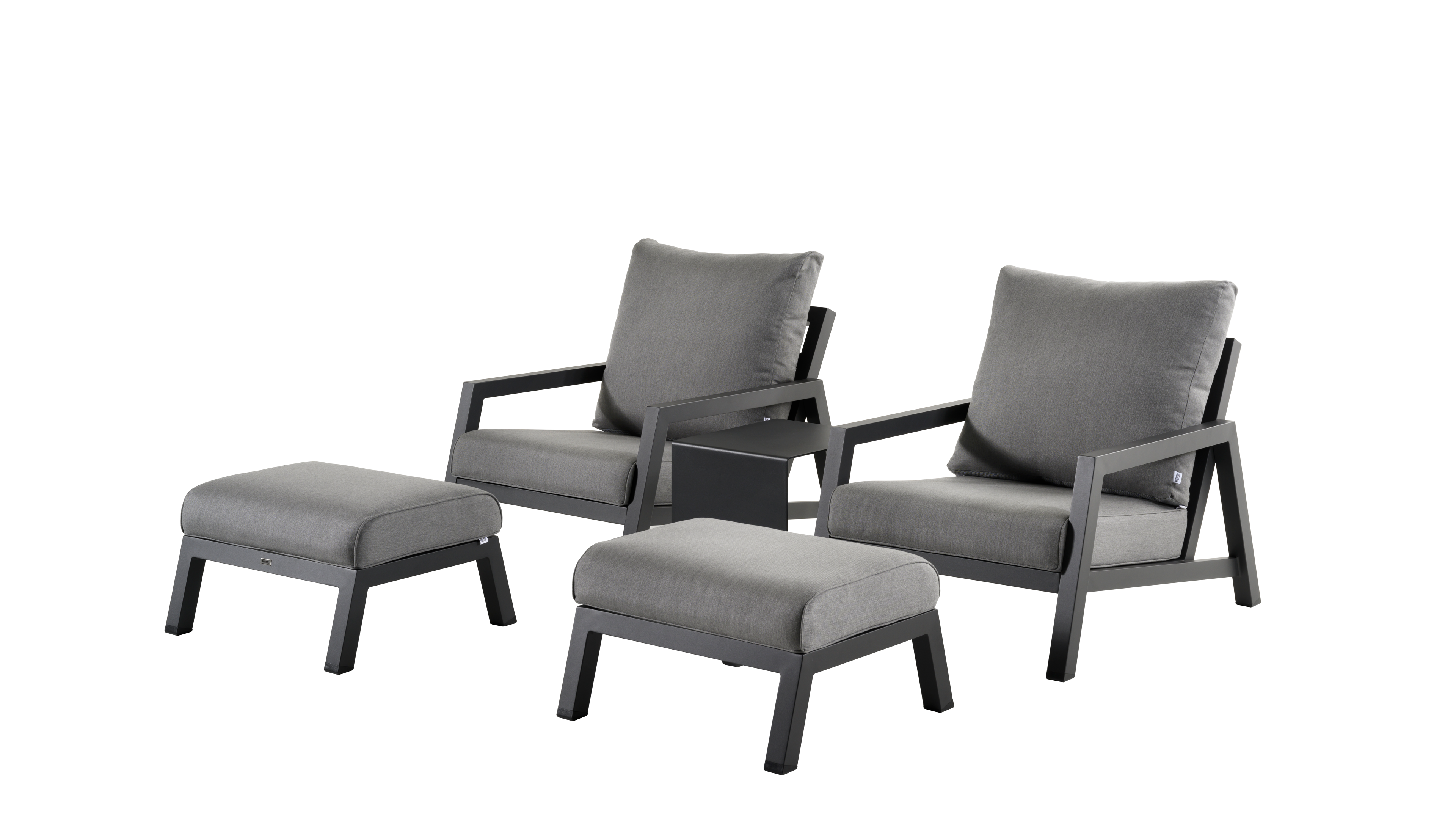 Zen'so balkonset in zwart aluminium met natte charcoal chine Sunbrella premium kussens | Exterioo tuinmeubelen